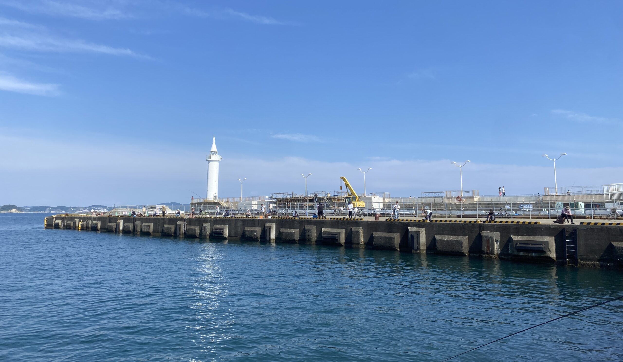 白灯台の堤防と、そこからマリーナへ伸びる護岸が釣り場になるわね。